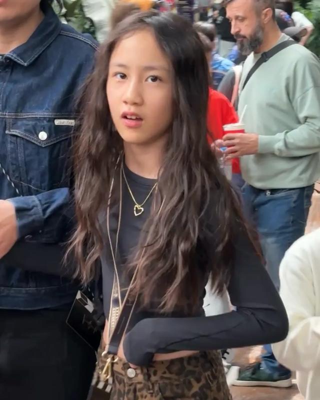 只见多妹披着一头长卷发,身穿黑色露脐上衣搭配豹纹阔腿裤,一身摇滚风打扮看起来潮范十足,妥妥的辣妹造型,小蛮腰和大长腿十分抢镜。今年12岁的她个子高挑苗条,颜值和身材都非常出众。不少网友表示,多妹天生就是做明星的料,身材好,也漂亮,甚至还有点像允儿。